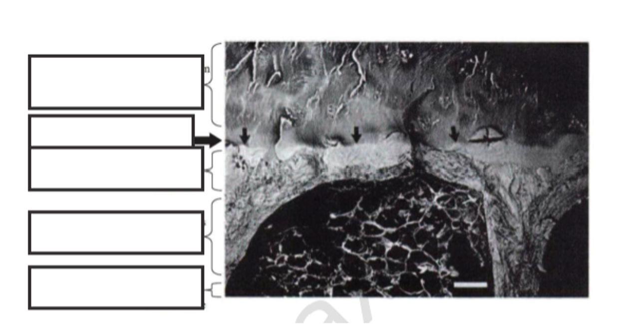 4- les collagènes de la matrice sont orientées, parallèlement à la surface du cartilage