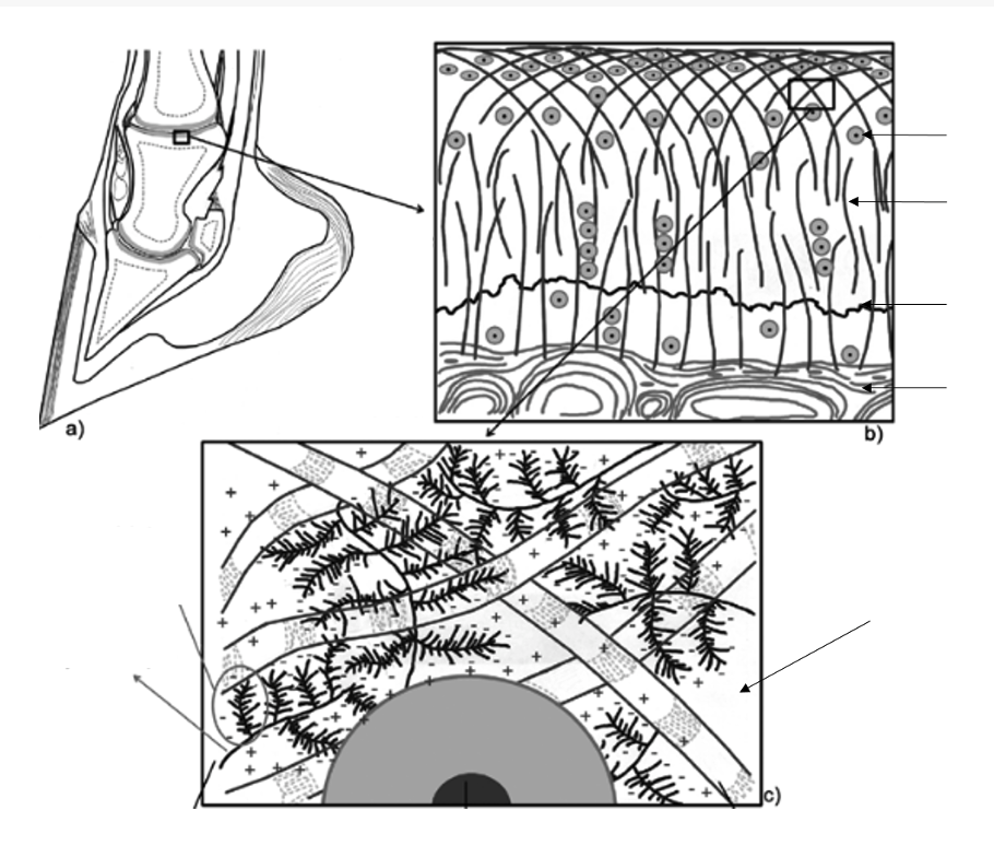 Il existe une couche fibreuse importante entre la sole osseuse et la couche calcifiée