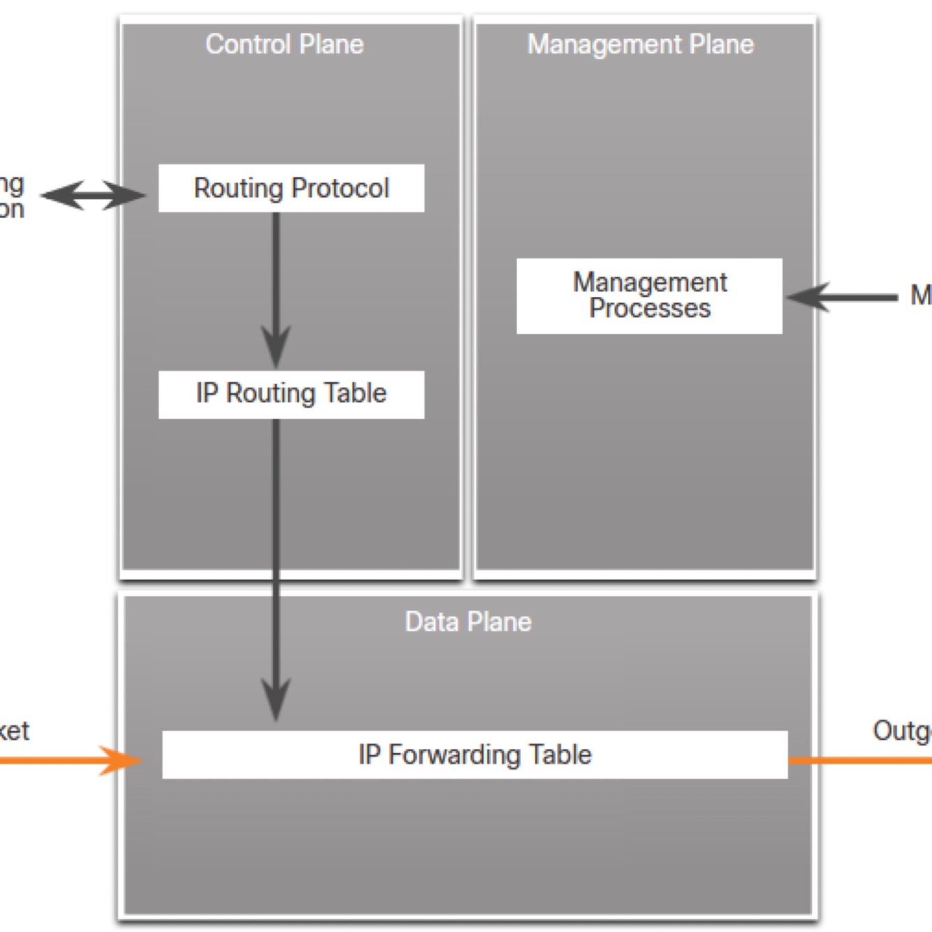 Routers and switches can be logically divided into three planes: