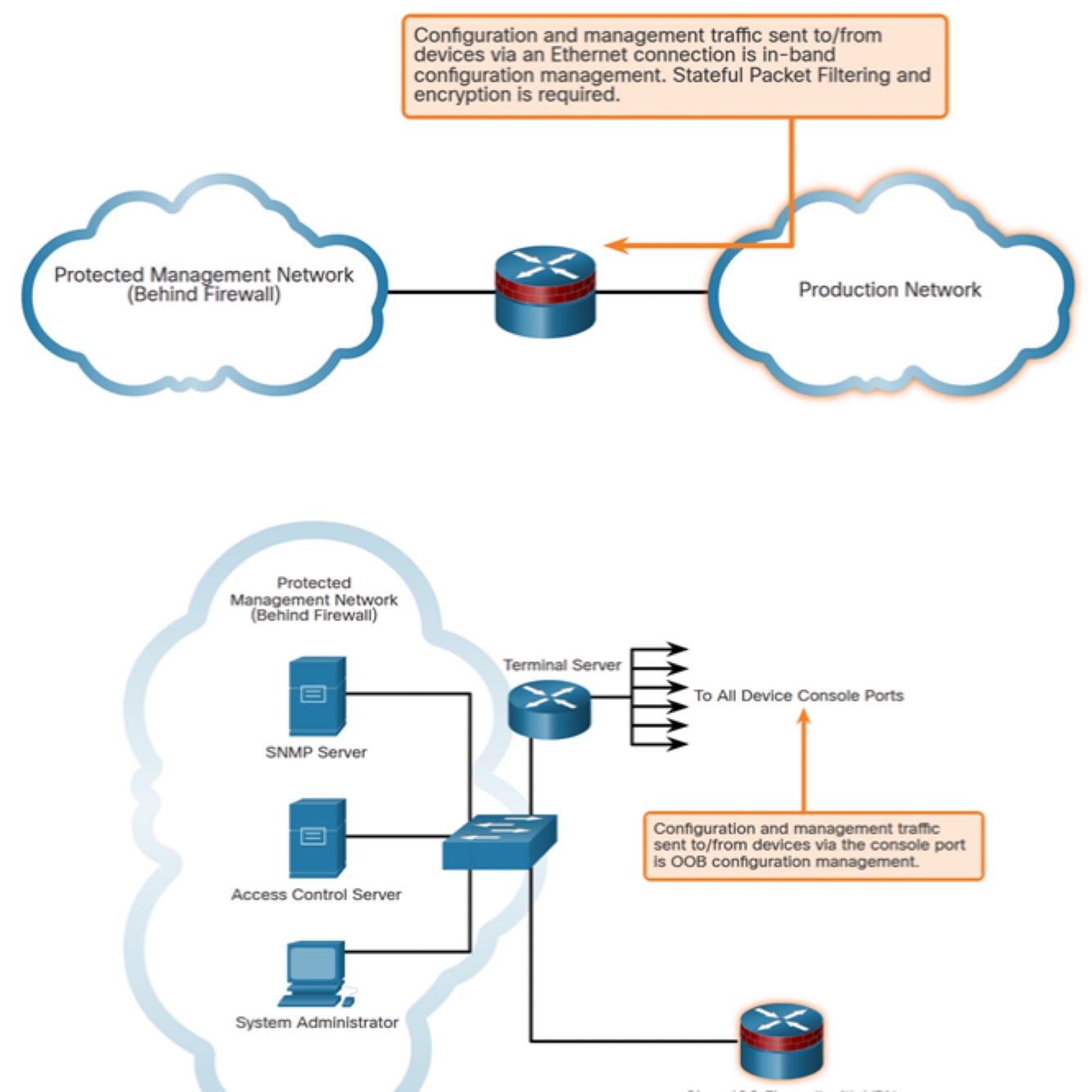• All traffic between the administrator and network devices should be encrypted.