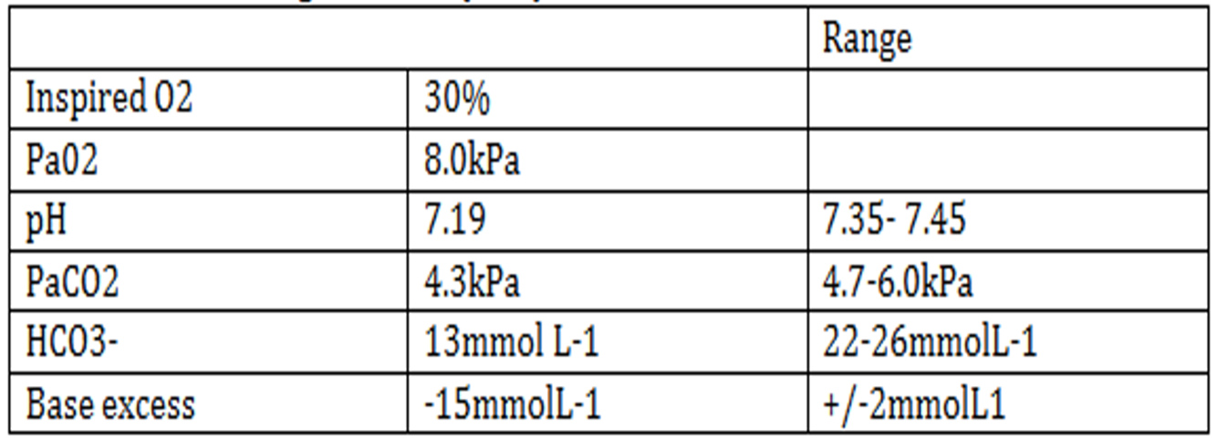 Her Arterial blood gas results (ABG) are in the pic.