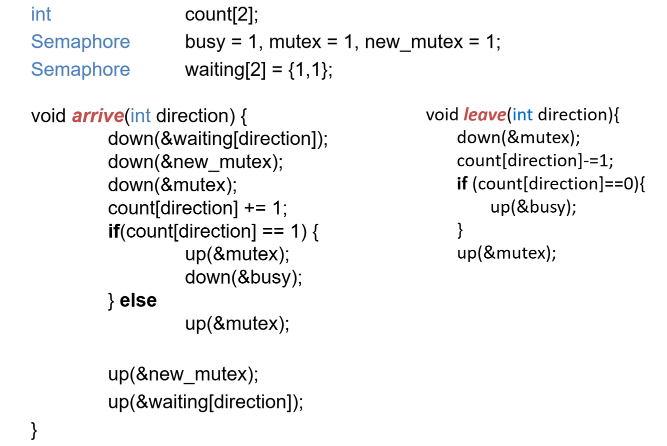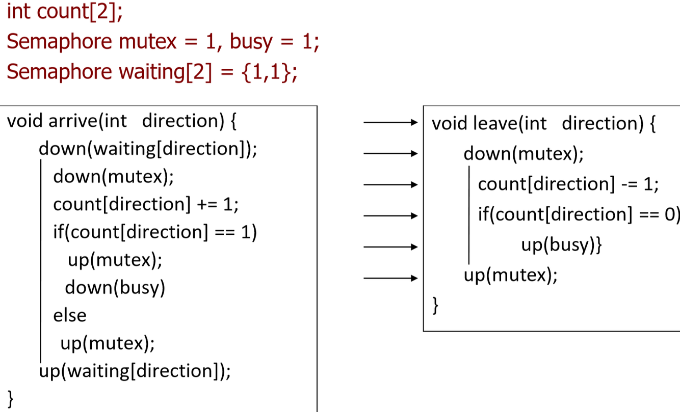 NOTE! DOWN(busy) comes after UP(mutex). That is super important becuase the release of busy is placed after the acquisition of mutex.