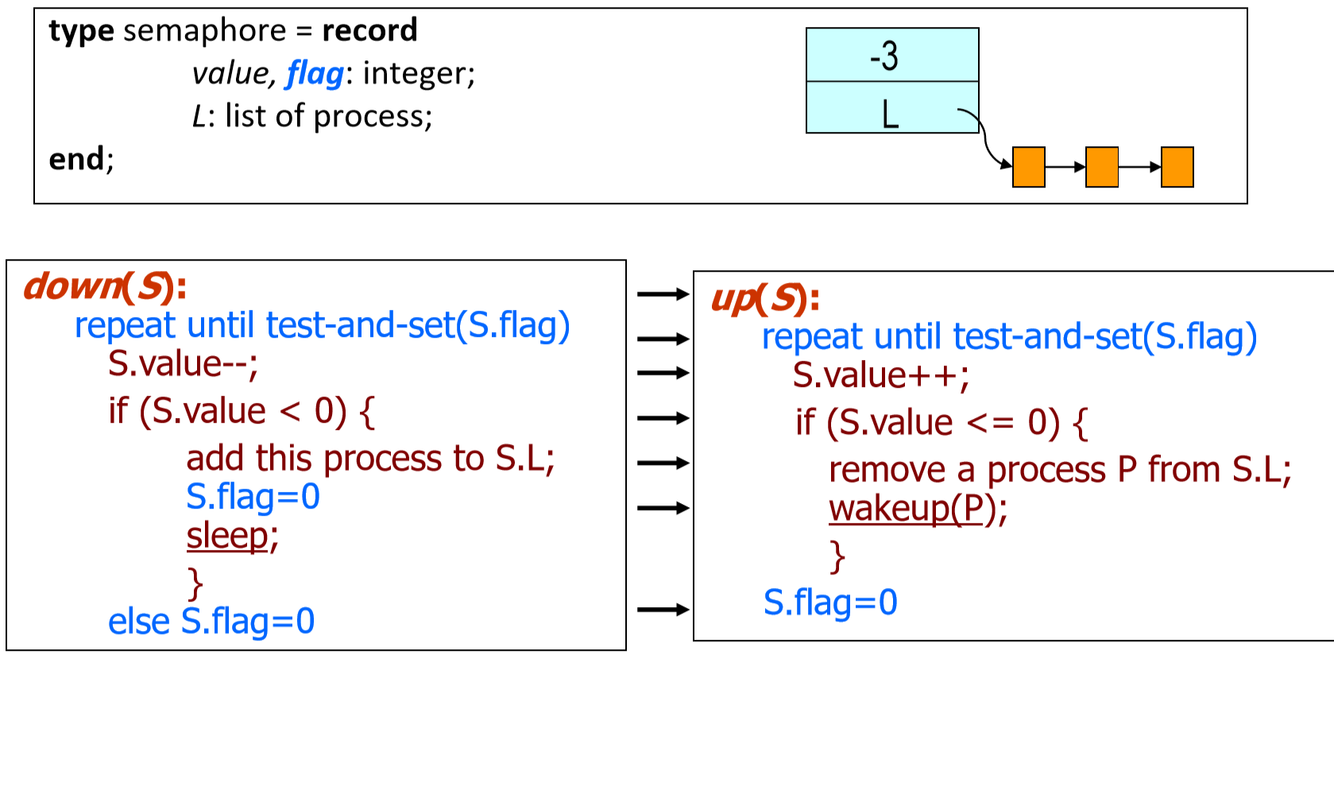The attached algorithm with the addition of wrapping mutex around flag = 0; sleep;