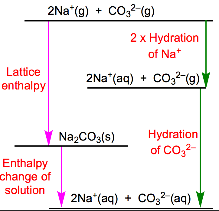 The student thought that he could determine the lattice enthalpy of Na2CO3 using a Born-Haber cycle that links lattice enthalpy with enthalpy change of solution. The enthalpy change of solution of Na2CO3 is exothermic.