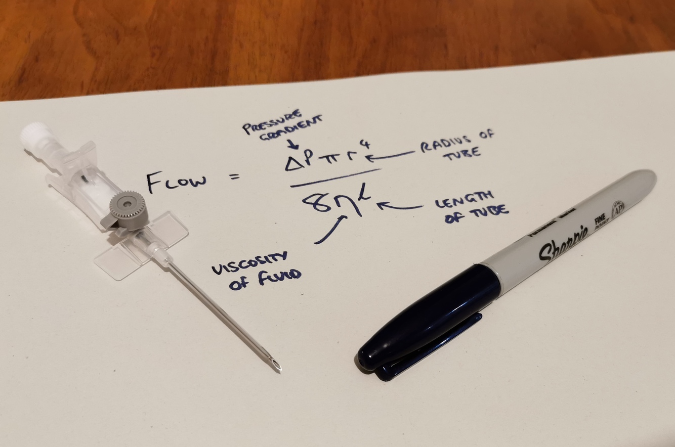 Guidewires, pacing lines, and central lines flushed with a conducting fluid