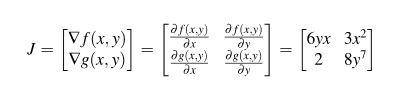 The matrix of the partial derivatives (the gradients for each function are rows)