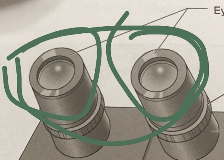 The lens mounted at the top of the microscope, through which you look. These have a manification (10x) stamped on them.
