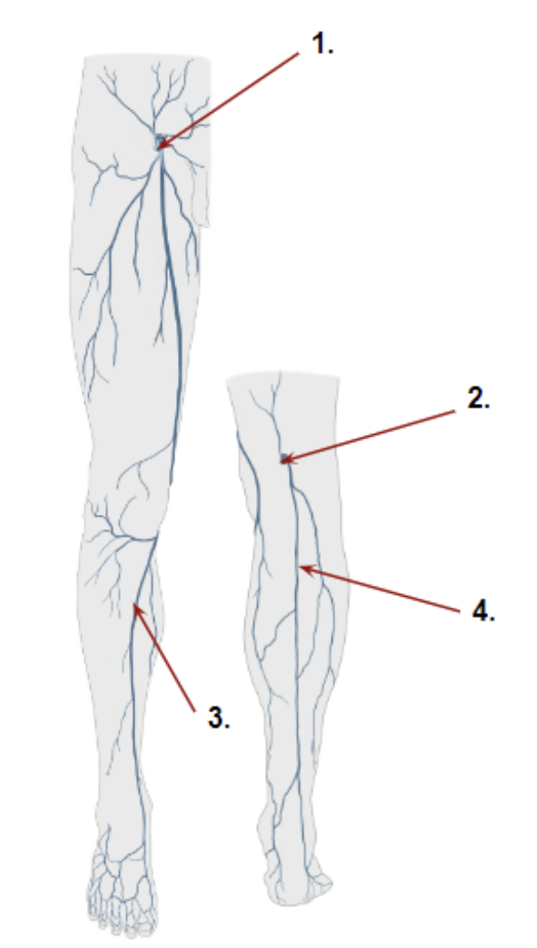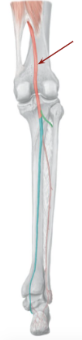 Which arrow is pointing to the small saphenous vein?