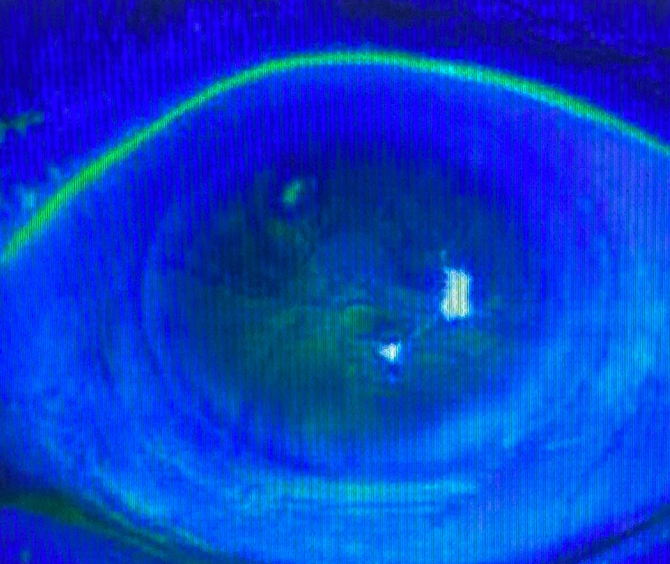 A gray or white arc visible above and below the outer part of the cornea.