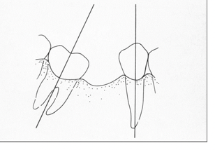 b) the long axis of the tipped molar should be no more than 40 degrees as a maximum angle between the two abutments