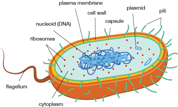 No nucleus simple structure ex: bacteria most abundant organisms single celled lack membrane bound organelles primitive bc developed before a nucleus DNA is loosely concentrated in a nucleoid region cell functions are carried out in cytoplasm
