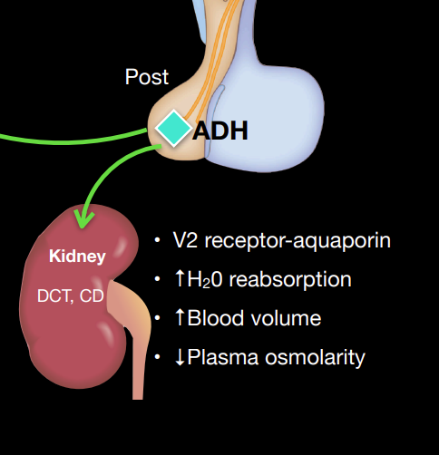 What type of receptor does ADH target at low concentrations? Where are these receptors found?