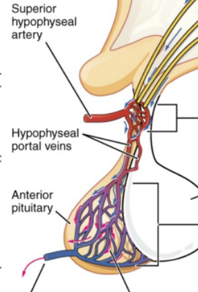 The anterior pituitary receives blood supply from the low-pressure hypophyseal portal system, making it more vulnerable to hypervolemic episodes