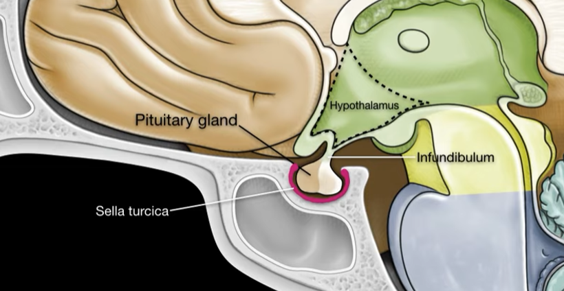 In what cranieal stricture does the pituitary gland sit?
