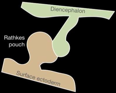 What embryological structure does the anterior pituitary gland develop out of? What structure does the posterior pituitary gland, infundibulum and hypothalamus develop out of?