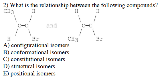 a) configurational/geometrical isomers