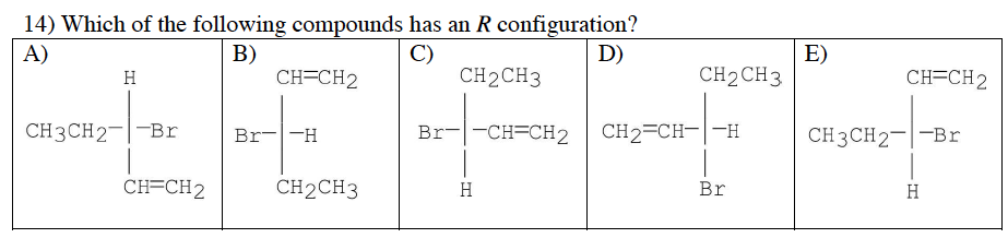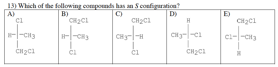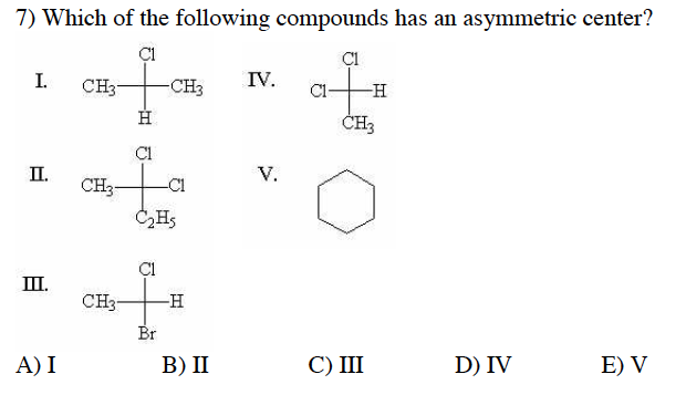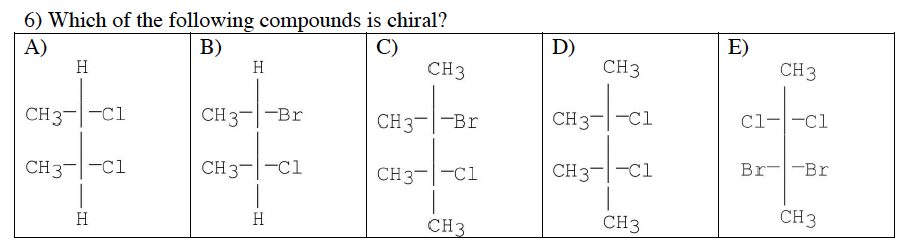 5) Which of the following compounds is never chiral?