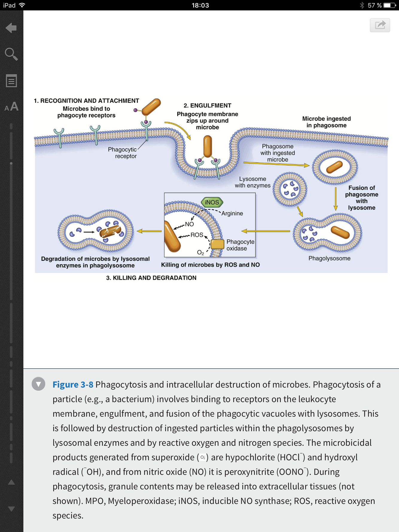 Nommer les 3 étapes de la phagocytose