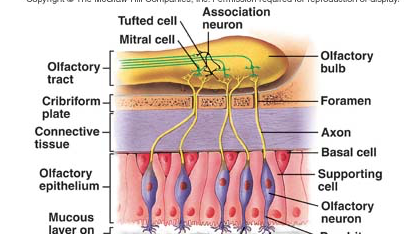 A)The axons of the olfactory neurons combine to form the olfactory nerves.