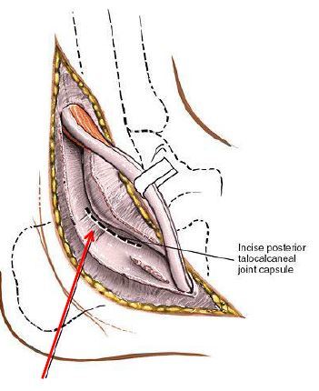 What ligament needs to be cut transversely to open the joint capsule ?