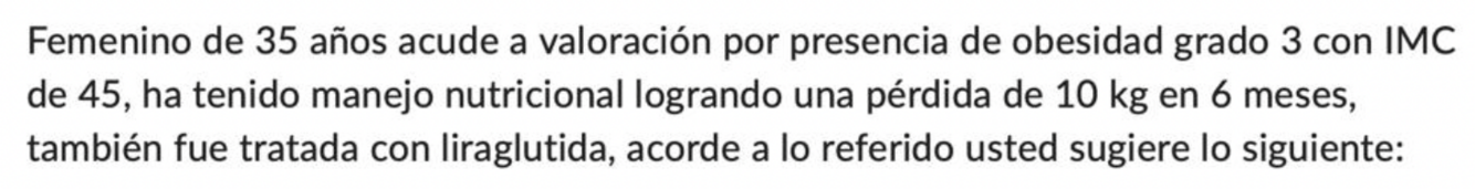 -continuar manejo nutricional hasta que pierda 10% de peso