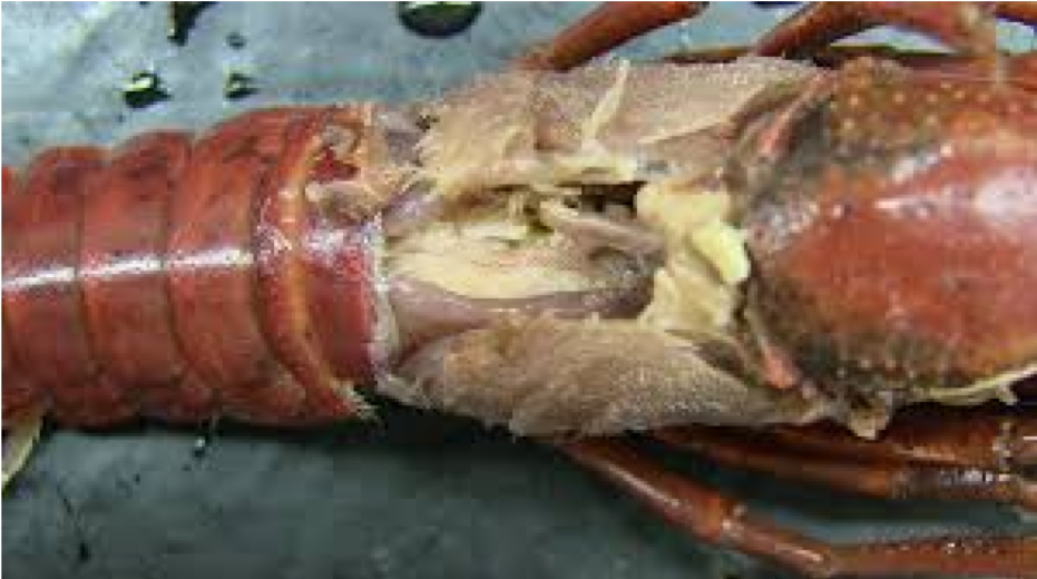 This is a crawfish with part of the cephalothorax removed. What structure is the arrow pointing to?