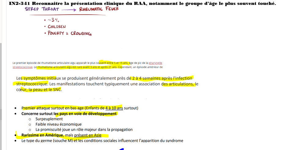 2-4 semaines plus tard—) symptomes de RAA ( polyarthrite Migratrice, cardite….)