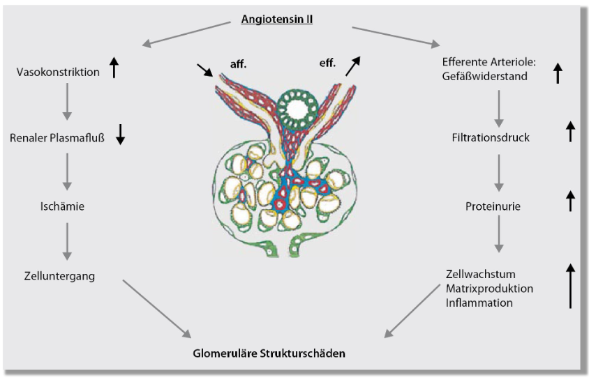 Wie/ warum wirkt ein erhöhtes Angiotensin II Nephrotoxisch / Schödlich