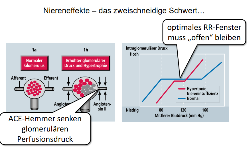Lehrbuch: beidseitige Nierenarterienstenose ist absolute Kontraindikation = weil durch Angiotensin II vermittelte Konstriktion der Vas efferentes die glomeruläre Filtration aufrecht erhalten wird