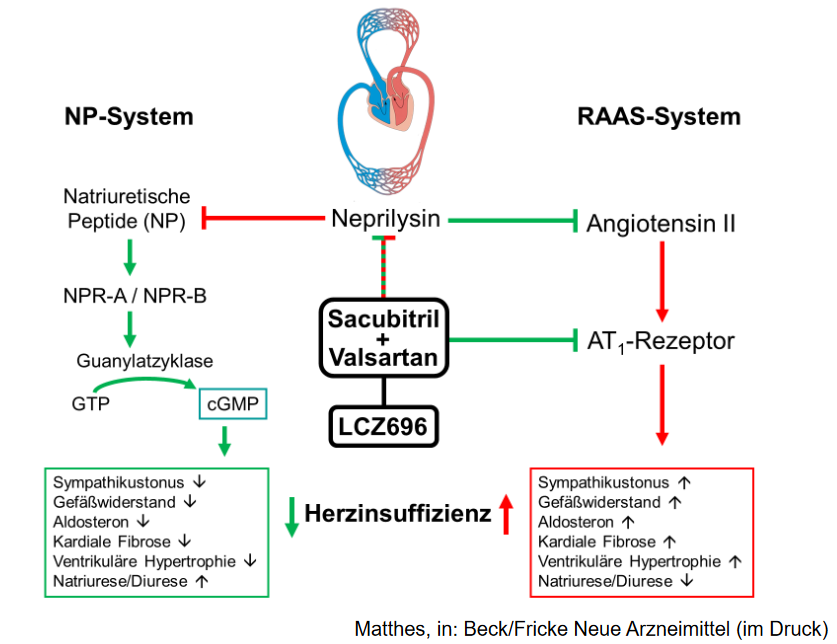 = Angiotensin-Rezeptor-Neprilysin-Inhibitoren (ARNI) -> Prognoseverbessernd bei Herzinsuff