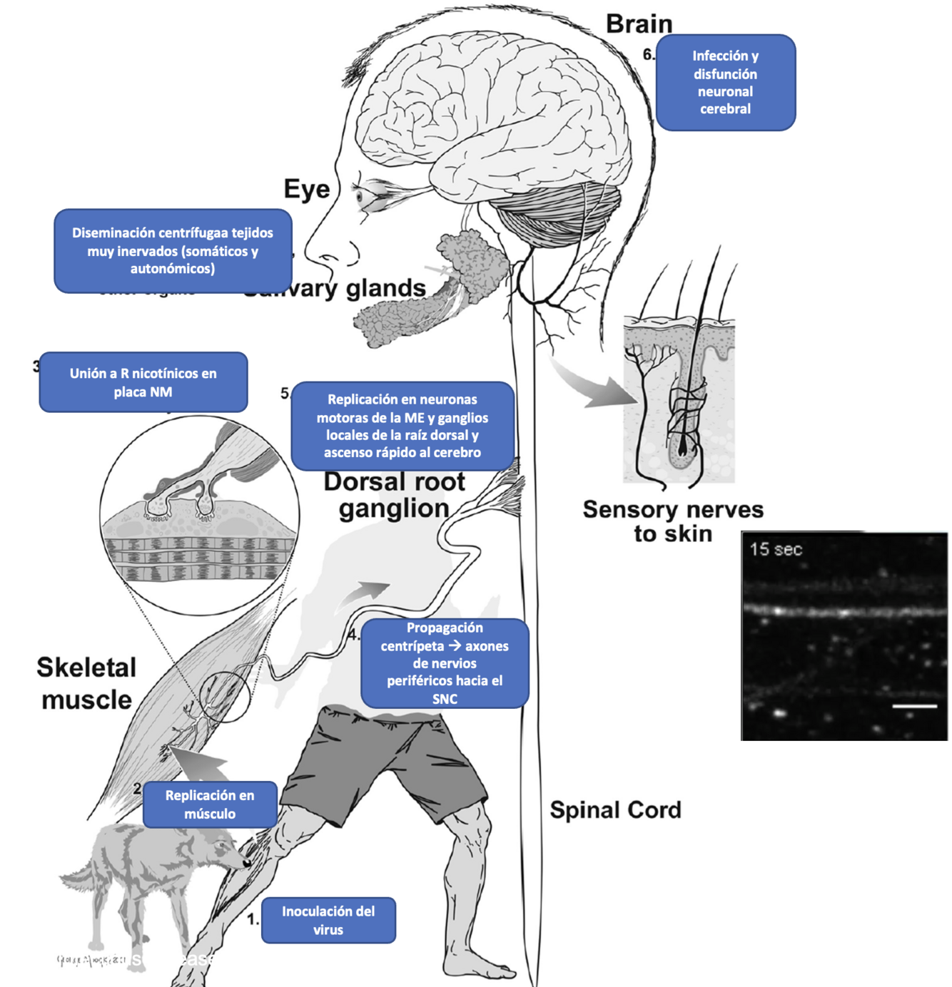 En un plazo de 60-72 hrs desde la inoculación, ya puede estar presente en ganglios de raíces dorsales.