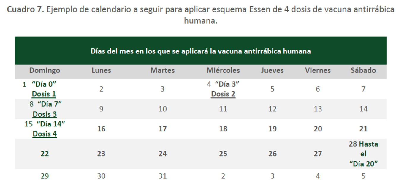 Esquema Essen de 4 dosis de vacuna antirrábica