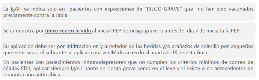 En caso de que la dosis de la vacuna se retrase por algún motivo, se debe reanudar el programa PEP (no reiniciarlo).
