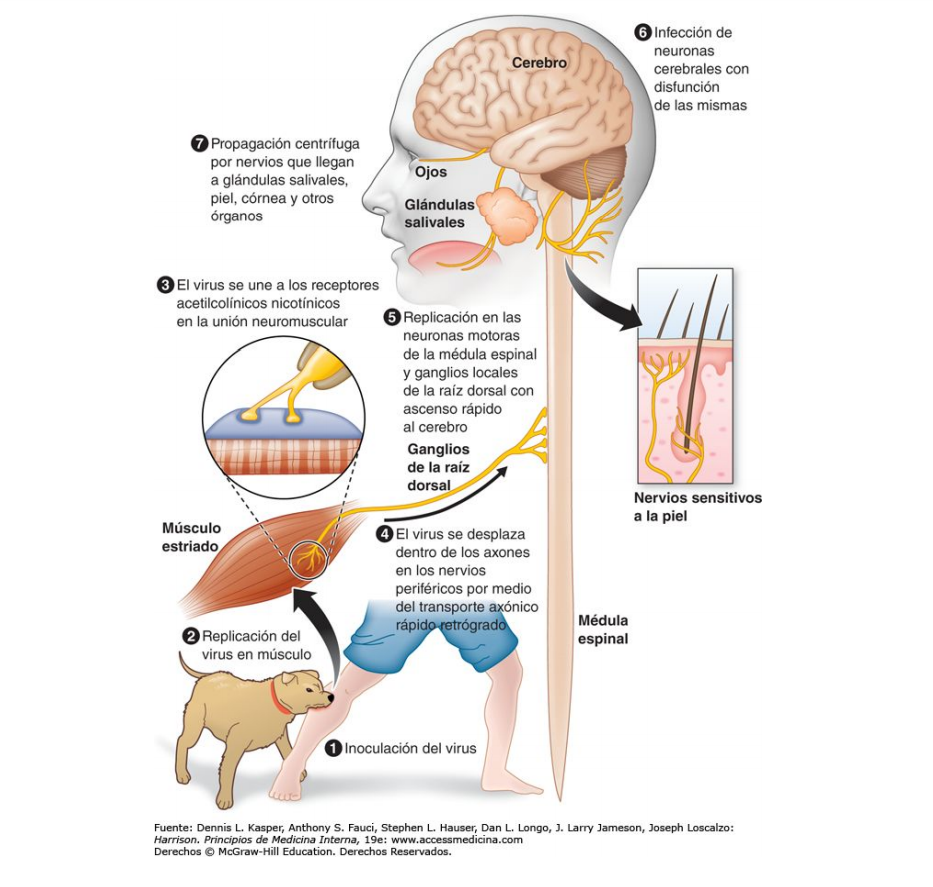 La rabia es una zoonosis viral que se transmite, principalmente, a través de la saliva de animales infectados. Puede afectar a casi todos los mamíferos, incluyendo al hombre, donde produce una encefalopatía viral aguda potencialmente mortal si no se realiza tratamiento inmediato posterior a la inoculación