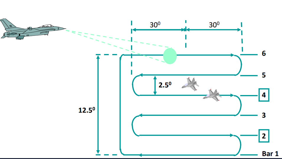* Tracking RADARs use narrow beams to follow a target in track.