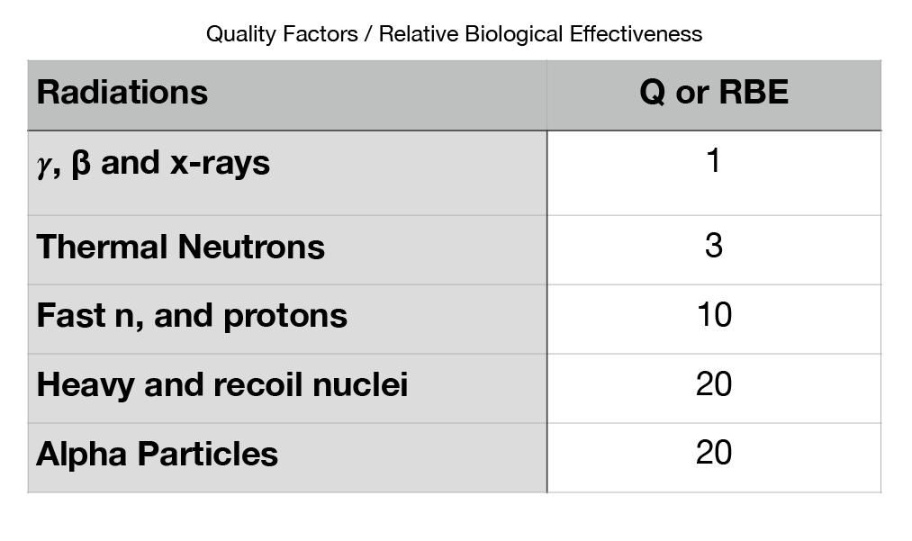 Some radiation is more damaging than others because of their Quality Factor (Q) or Relative Biological Effectiveness (RBE).