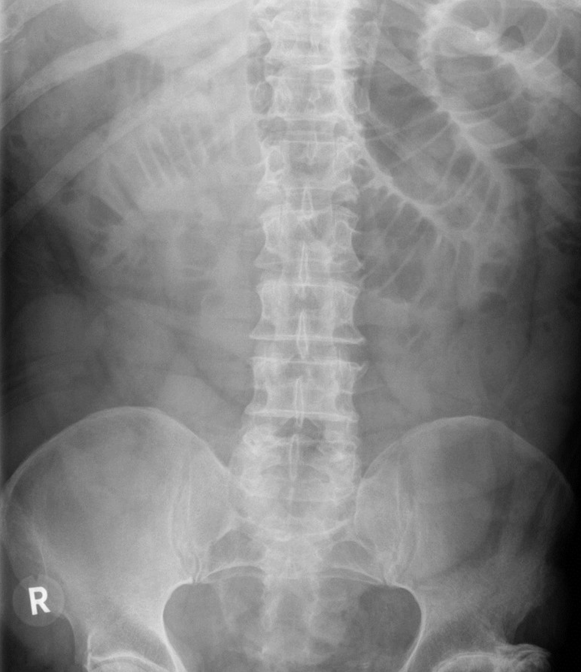 Radiographie de l’abdomen (vue AP ; décubitus dorsal)