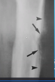 - Lésion lytique contour « flame shaped reactive sclérosis »