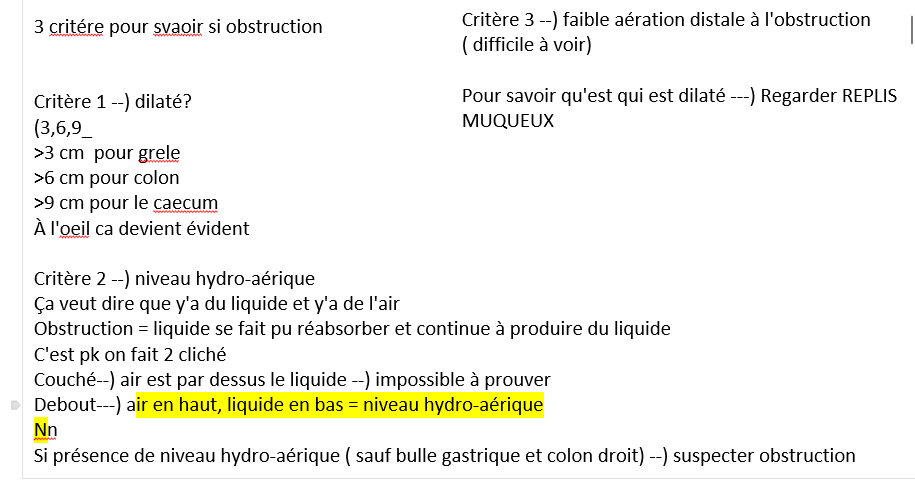 quels sont les 3 critères pour savoir si il y a obstruction ?