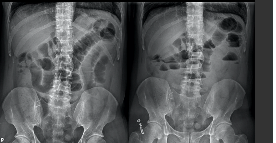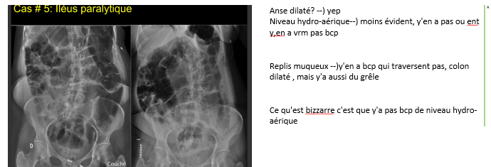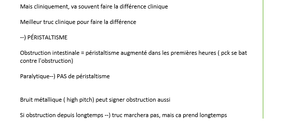 meilleur facon de différencier un illéus paralytique d’une obstruction collique?