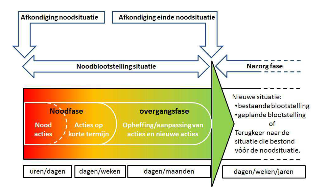 Voortaan is een noodsituatie, conform de internationale aanbevelingen, opgedeeld in 3 fasen: de noodfase, de overgangsfase en de nazorgfase.