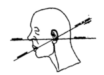 Alatragus line should be paralell to the floor