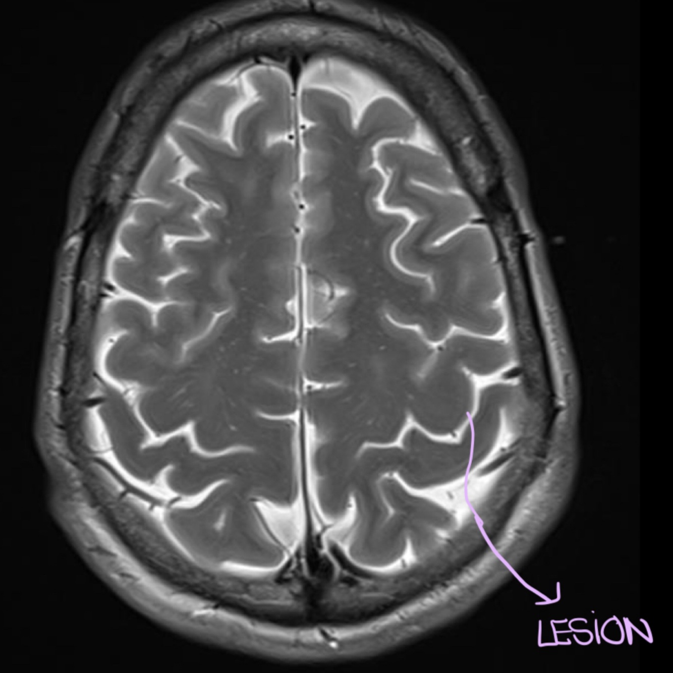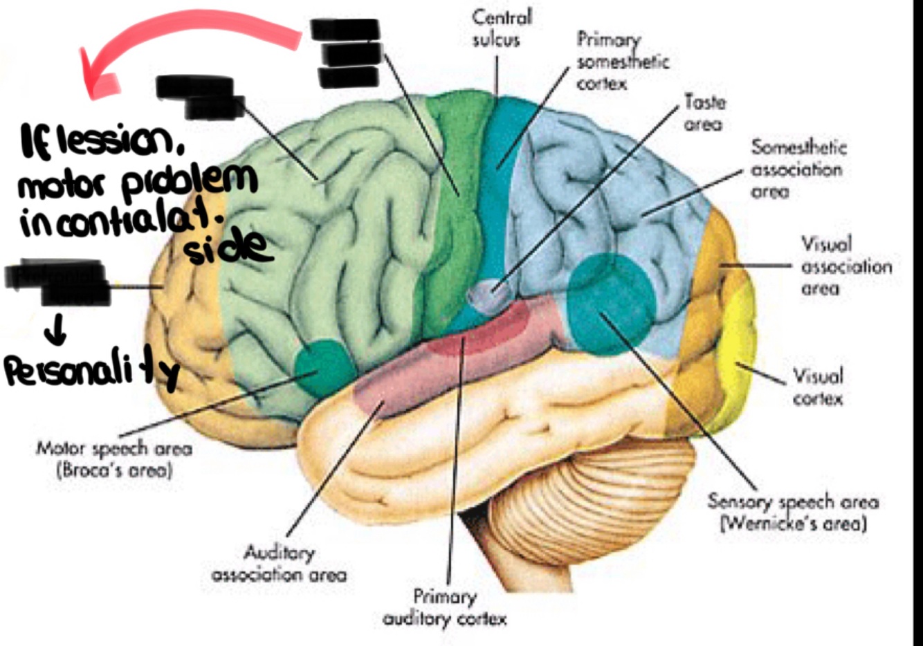 A lesion in this area might cause, problems in the contralateral… (hand/leg)