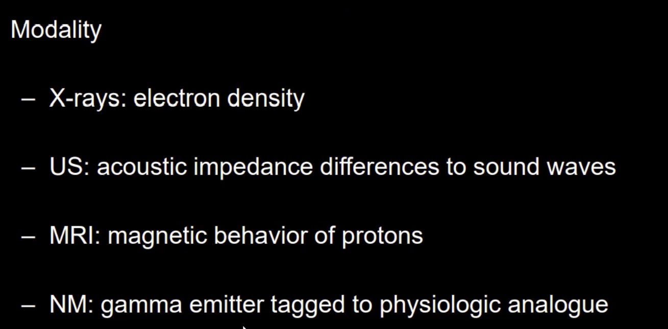 Imaging principle of CT, ultrasound, MRI, and nuclear medicine