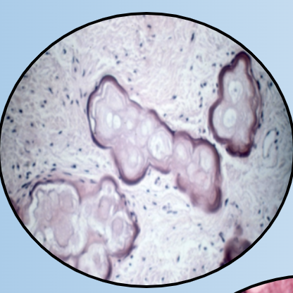 What are seen histologically here?