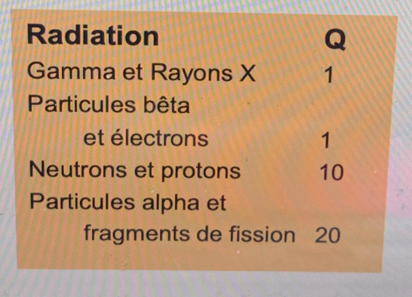—> mesure de dommages biologiques causés par une qté d’E selon le type de radiation