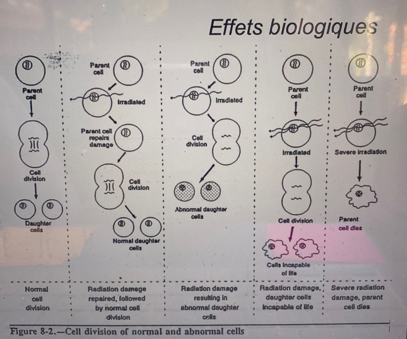2) radiation endommage c mère, c fille ne peut pas se diviser
