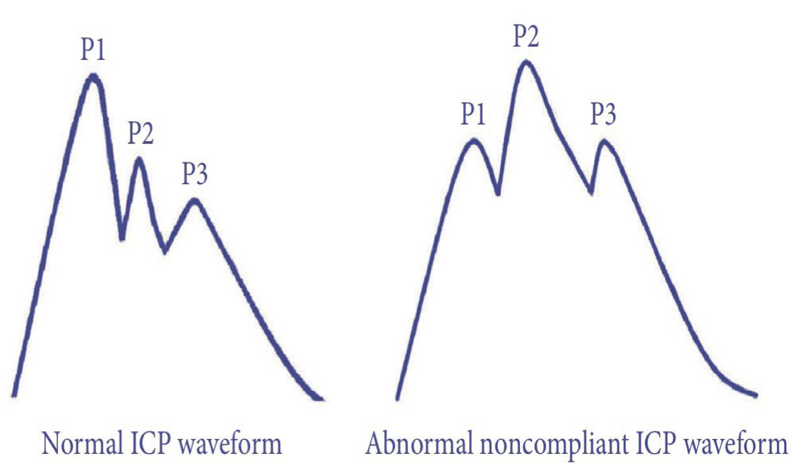 A change in brain injury compliance causes the reversal of P1:P2 and P2> P1