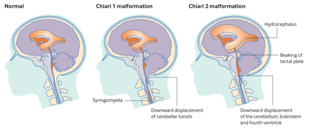 Early fusion of the sutres of the skull → not enough rough for the expanding brain