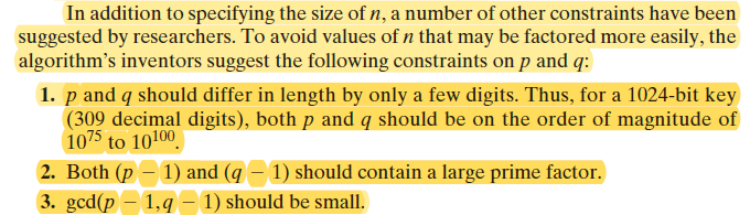 Both (p - 1) and (q - 1) should contain a large prime factor